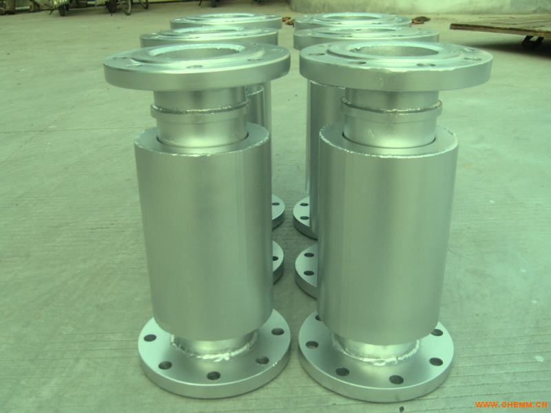 套管不锈钢波纹补偿器的实际应用及规律3、管道的热伸长是通过甲管在套筒中移动实现补偿的,介质流动不是直接由甲管流入乙管,而是经过旁通管实现的。这样在一个补偿器中就有了一对甲乙封头,介质压力产生的水平推力F1、F2在补偿器中实现了平衡。这一结构还可以看成是方向补偿器的型式,管道伸缩是采用套筒式的结构。套管补偿器主要用在安装弯管补偿器空间不够的场合。