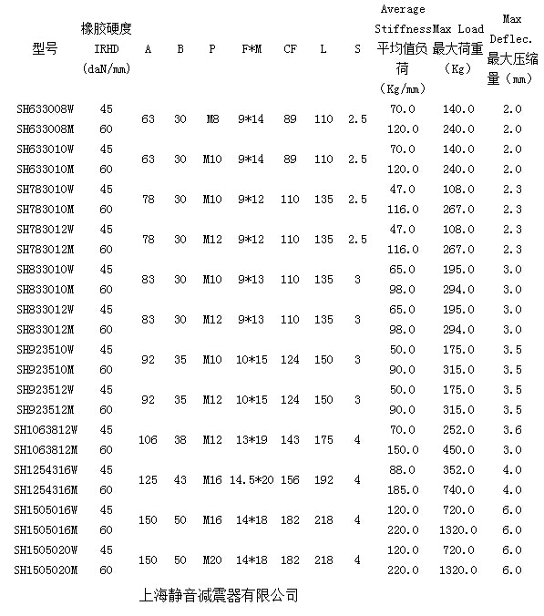 橡胶减振器之SH型橡胶减振器及各款规格