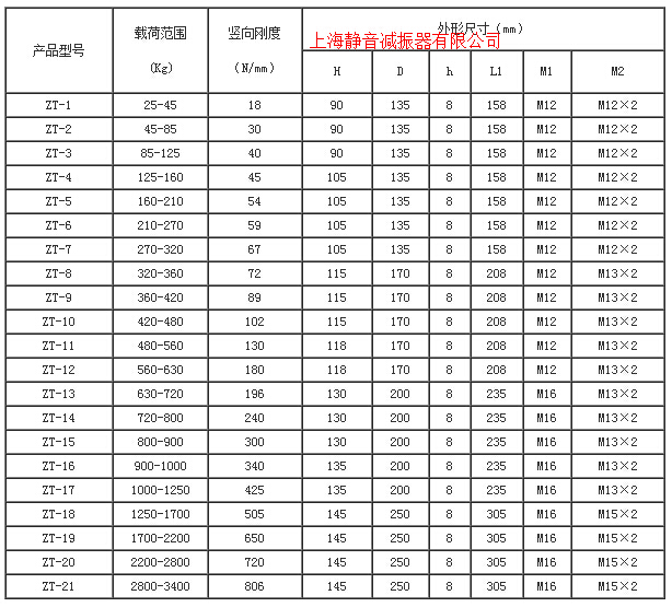 ZT型阻尼弹簧减振器外形尺寸及技术特性表: